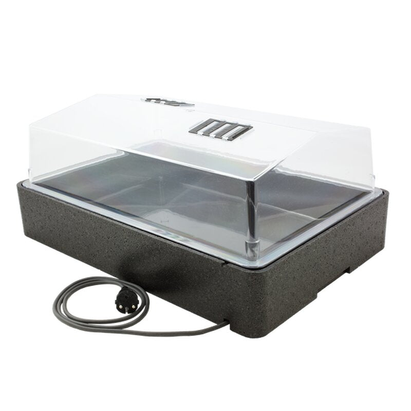 Der Propagator 64 mit Heizung ist die ideale Lösung für die Anzucht von Jungpflanzen, Stecklingen und Saatgut – selbst bei niedrigen Umgebungstemperaturen. Mit seinen großzügigen Maßen von 59 x 39 x 24 cm bietet er ausreichend Platz für eine erfolgreiche Pflanzenanzucht.